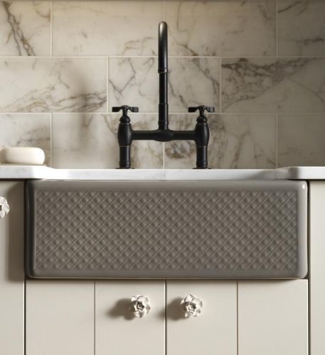 Kohler K-14571-T3-W2 Evenweave Design on Alcott tile-in sink, Earthen WhiteDesign is rooted in the current movement of dynamic woven patterns found in leather accessories knitted clothing and other carved surfaces.Kohler K-14571-T3-W2 Evenweave Design on Alcott tile-in sink, Earthen White, Features:; 25"L x 22"W; Neutral palette works well in a variety of decors; Glaze effect highlights carved texture and creates an artisan feel; Crafted of fireclay to provide a durable nonporous product * Image shown may vary by color, finish, or material * Image shown may vary by color, fini